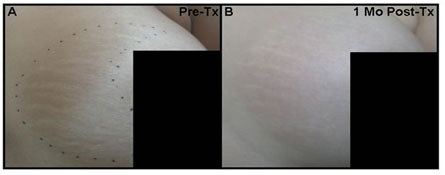 - 臉部及頸部皺紋、關節皺摺及妊娠紋成長紋及肥胖紋皆能達到明顯改善